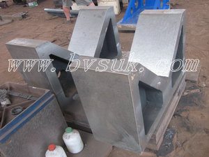 單口v型鐵的標(biāo)準(zhǔn):按 GB4972-85標(biāo)準(zhǔn)制造,一般都成對供應(yīng),是一個四棱體,工作面上加工有90度的V型槽.主要適用于軸類零件的檢驗和劃線。單口鐵精度:分為1級、2級、3級。單口鐵主要用來安放軸,套筒,圓盤等圓形工件,以便找線與劃出線。一般單口v型鐵都是一副兩塊,兩塊的平面與V型槽都是在一次安裝中磨出的。單口鐵的尺寸相互表面間的平行度,垂直度誤差在0.01毫米之內(nèi),V型槽的線在V型架的對稱平面內(nèi)并與底面平行,同心度,平行度的誤差也在0.01毫米之內(nèi),V型槽半角誤差在±30~±1范圍內(nèi)。單口鐵也可做劃線,帶有夾持弓架的單口鐵,可以把圓柱形工件牢固的夾持在單口鐵上,翻轉(zhuǎn)到各個位置劃線。我廠可以定做各種規(guī)格單口鐵,大型v型鐵等。